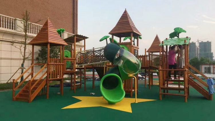 木质体能拓展组合滑梯安装实景